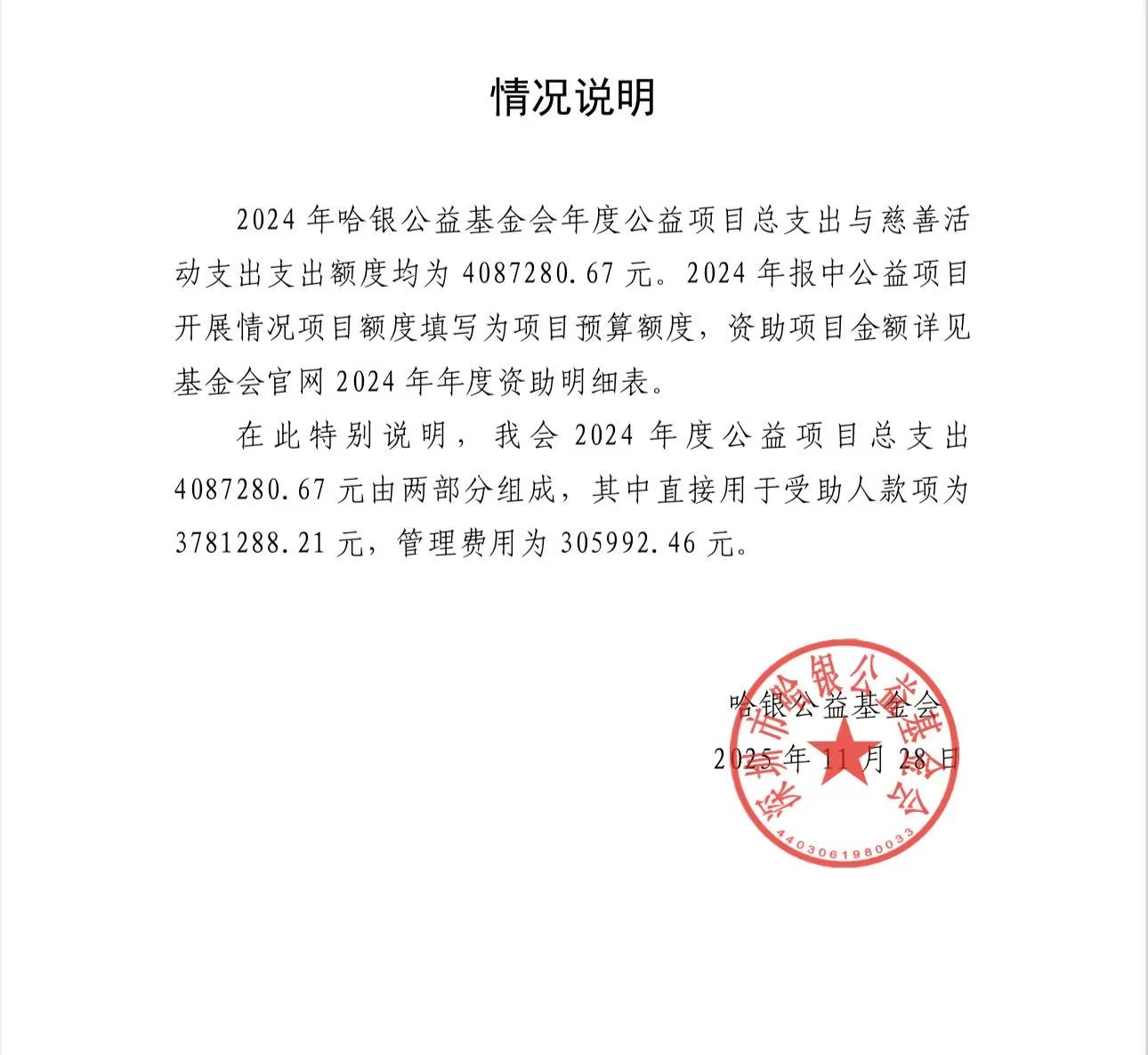 关于哈银公益基金会2024年报公益项目开展情况的信息更正说明. 2025年12月4日 基金会管理员 新闻动态-新闻中心 基金会管理员关于哈银公益基金会2024年报公益项目开展情况的信息更正说明.12.04.2025